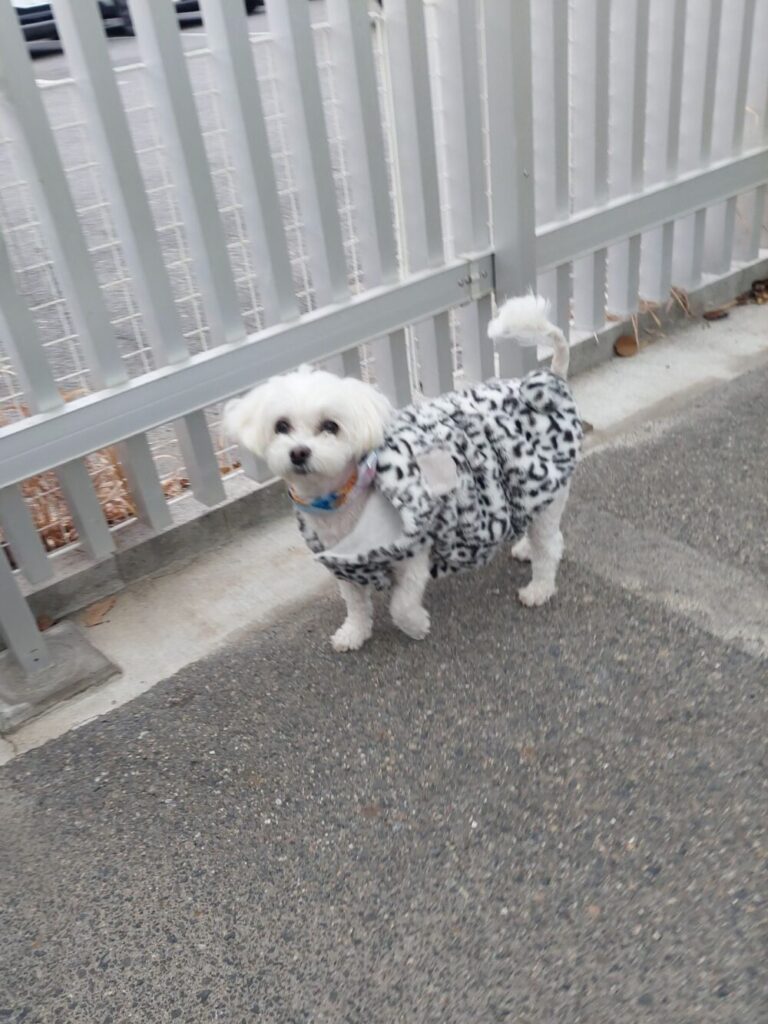 ちょっぴりソワソワしているだいふく君(゜゜;)(。。;)ドックランでは柵の隙間から外を見ています( ゜o゜)